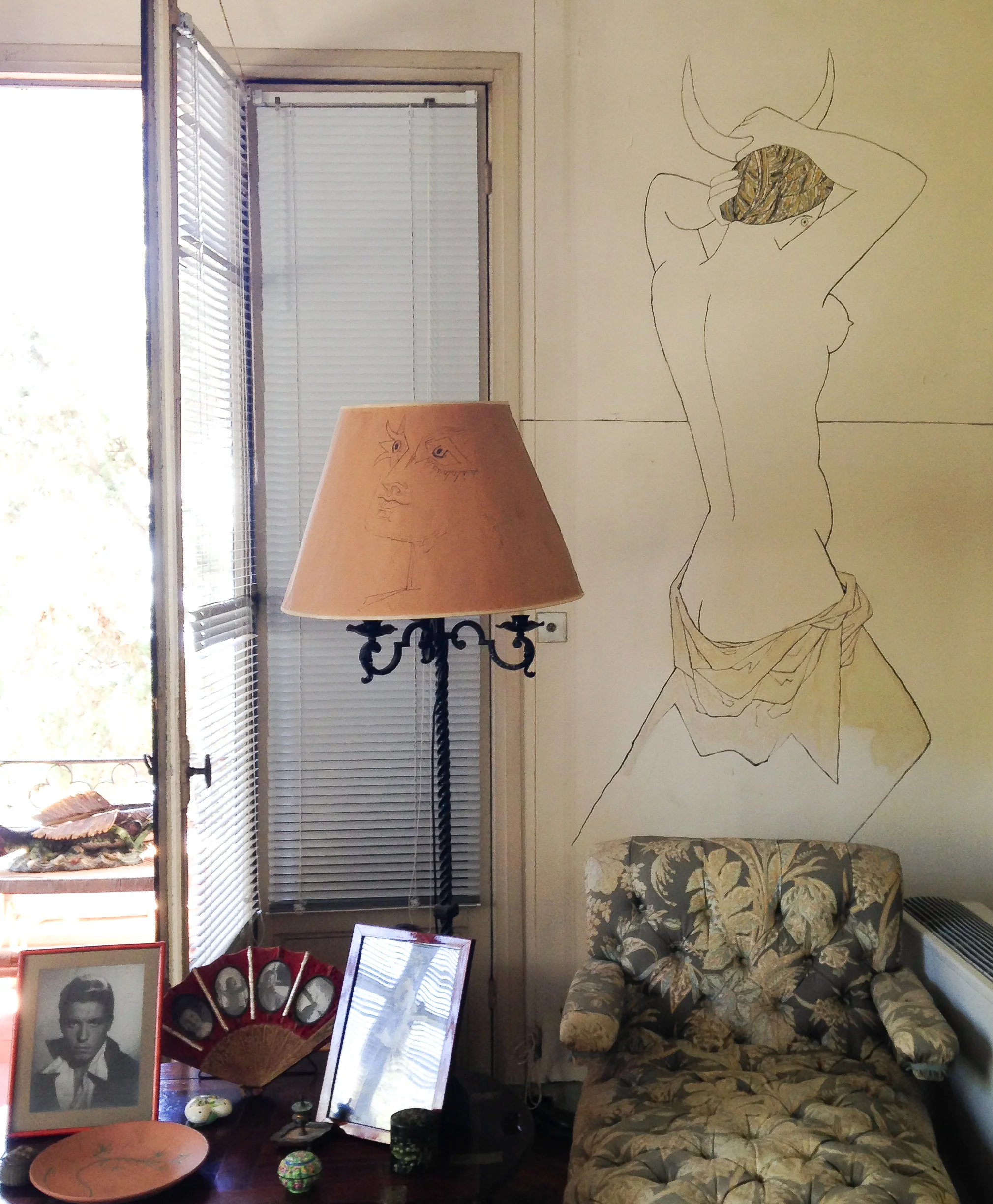 To me, this fine print at the bottom of an old newspaper was nothing if not an invitation. I inquired to the international line. What do you know, a man named Eric was on the other end. “Meet me at 2 o’clock.” For reasons I can’t explain, most of my wild goose chases seem to happen this way, most serendipitously and with uncommon ease. So, in a spirit of pure naiveté and brazenness (how else should one proceed), my husband and I drive, most pleasantly, to the eponymous Villa Santo Sospir, an artistic legacy frozen in time.