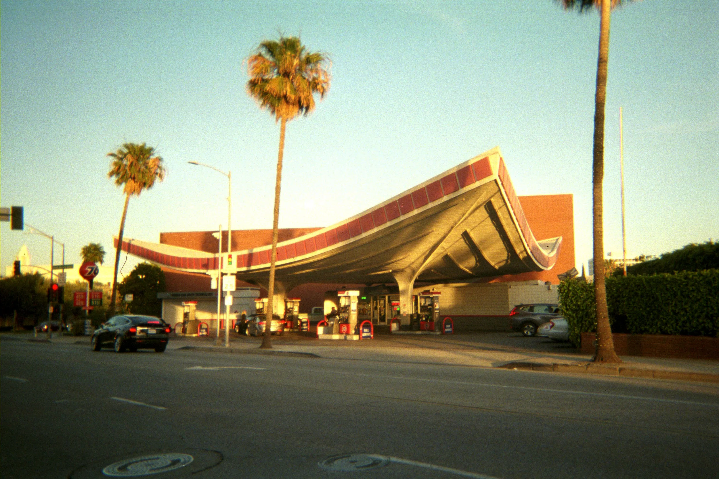 This series is an exploration of myth embedded in both mundane and celebrated Los Angeles architectural movements. The most fascinating thing about living in Los Angeles is the blatant performance that architecture plays in peoples' lives. While it can be argued that we all use design to reflect who we think we are and who we want to be, Los Angeles shamelessly expresses itself and its people through design. The architecture of Los Angeles is futuristic, weird, and eclectic but truly represents the diversity of people, dreams, and aspirations that make up the fabric of America. Even structures that seem to manifest a bygone era have in fact been constructed in the recent past: they are facades that announce, In Los Angeles, you can be anything you want to be. This series of selected photographs, taken through a controlled medium, a disposable camera, tries to capture the myths of Los Angeles, refractions of the American dream.